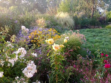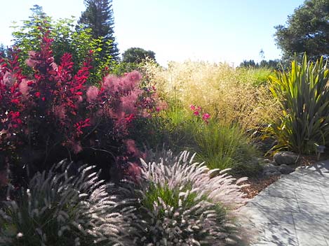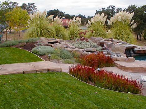 Wine country vistas are a stunning backdrop to any landscape. One of the challenges of a country garden is the interface between the manmade and wild areas. Ornamental grasses, because they occur in both settings, are a useful transition plant.