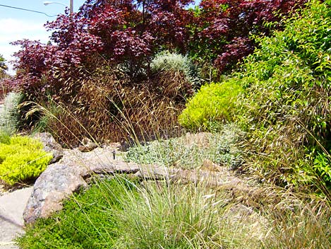Don't let the words "drought tolerant" and "deerproof" fool you—these gardens can be as beautiful as any other. The landscape in this photograph is just one year old.