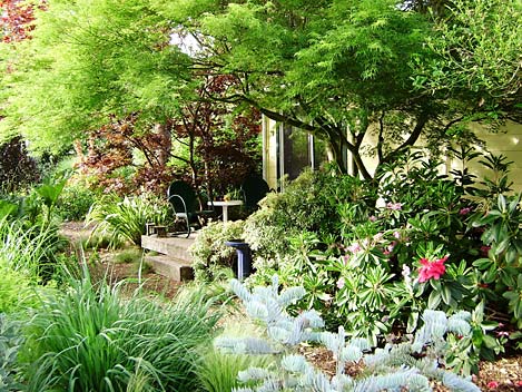 Gardens evolve constantly as trees and shrubs grow. A well-designed, mature garden uses less water, has fewer weeds, and attracts more wildlife than new landscaping.